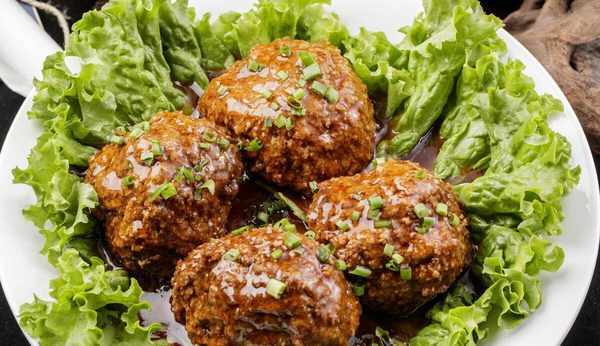 除此之外,四喜丸子也是各類喜宴中必有的菜譜,四個色、香、味俱佳的肉丸子組成的菜品,寓意為人生福、祿、壽、喜四大喜事,在喜宴中也是取其吉祥之意。如果喜歡的話,就自己動手做一做吧!