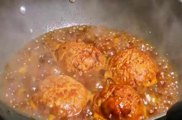 第五步燜四喜丸子。重新起鍋燒油,油熱放入蒜米末和蔥末煸出香味,加入適量鹽、生抽、蠔油和2勺清水攪拌均勻,大燒沸開倒入四喜丸子,蓋上鍋蓋調中小火燜10分左右,期間要記得翻動丸子讓其完全入味均勻,時間到撈出四喜丸子,鍋裡加入適量淀粉水勾芡大火收汁,把勾芡汁淋在四喜丸子上即可上桌。
