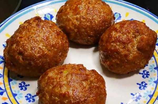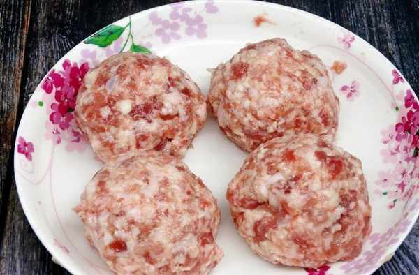 第三步包成圓圓的丸子。醃制時間到,加入適量食用油、花椒粉、2勺清水順一個方向攪拌均勻,倒入適量的玉米淀粉攪拌均勻,把肉末充分攪拌成稠狀即可,在手上蘸點清水,用手把肉末捏成團制作成4個圓圓的丸子即可。