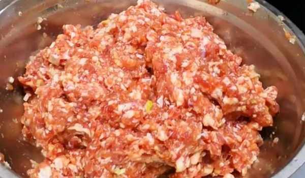 第二步醃制肉末。把剁好的肉末放入一個大碗裡,加入適量鹽、生抽、蠔油、料酒、胡椒粉、海鮮粉攪拌均勻,靜置醃制20分左右備用。