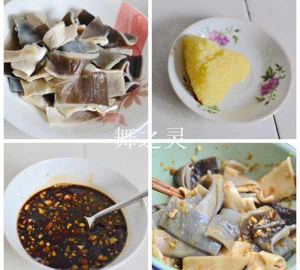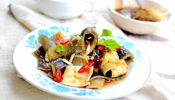 蒜剁成蓉,分量多一些,然後準備生抽、糖、陳醋、香油、味精和蒜蓉混合拌勻,最後加入魚皮拌勻,撒上紅尖椒裝飾就可以上桌瞭,不到5分鐘的時間。