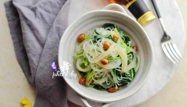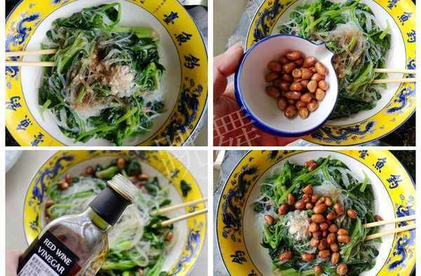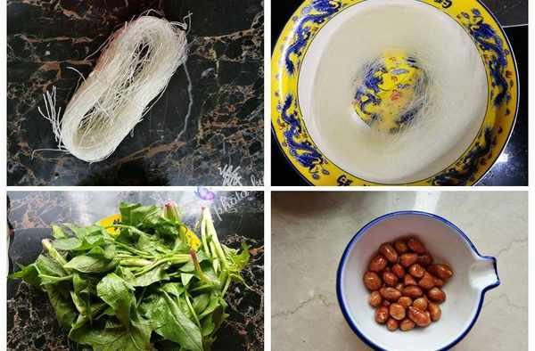 材料:菠菜50克 粉絲一把 香酥花生適量