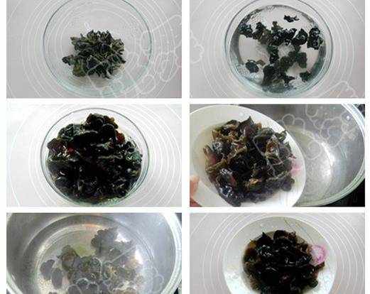 將黑木耳事先泡發,然後放入燒開的鍋裡面再次煮開,瀝幹備用