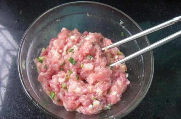 1、將五花肉洗凈,然後剁成肉末放入盆中,盡量切碎一些像餃子餡一樣,蔥和薑也洗凈切末,加入肉末中,再依次加入少量鹽和蠔油,雞精,一個雞蛋取出蛋清加入盆中,用筷子朝著一個方向畫圈將調料攪拌均勻,使五花肉起膠變的粘稠,然後再加入100g的淀粉,這樣一會兒做成肉丸更有粘性不易散開,如果喜歡吃面面的有彈性的丸子可以多加一些淀粉,如果喜歡嫩一些的少加一些就可以,再用筷子朝一個方向攪使肉餡均勻;