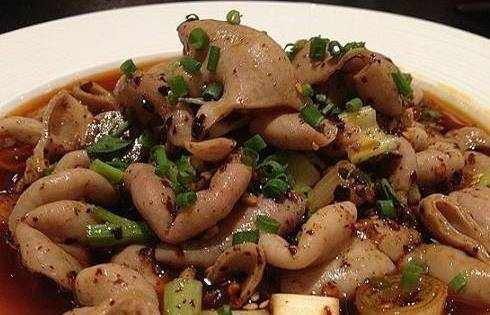 熱拌肥腸;做法:肥腸用生粉搓洗幹凈,投入沸水中煮過,撈起放入高身容器裡。爆香薑蔥,濺料酒,下開水、薑汁酒,燒開後倒入高身容器內,拿去上雜把大腸扣軟熟。取出大腸,切件;大腸汆水,用老抽拌勻,過油上色,倒起。青、紅椒圈炒香,下大腸、冬菇件,鹽、味、糖、蠔油調味,炒勻後勾芡,包尾油即可上碟。