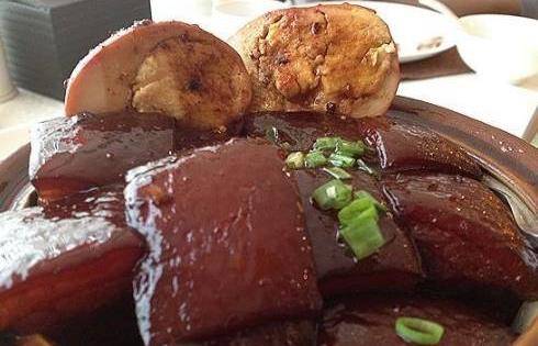 東坡肉;將五花肉切四方塊,先氽燙過,接著抹上醬油,再用熱油炸上色,撈出立刻用冷水沖涼。肉塊排放在鍋內,加入八角及所有調味料燒開,改小火燒至肉塊熟爛,約1小時。待湯汁收至稍幹時撒上香菜末,即可關火夾出食用。