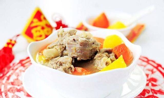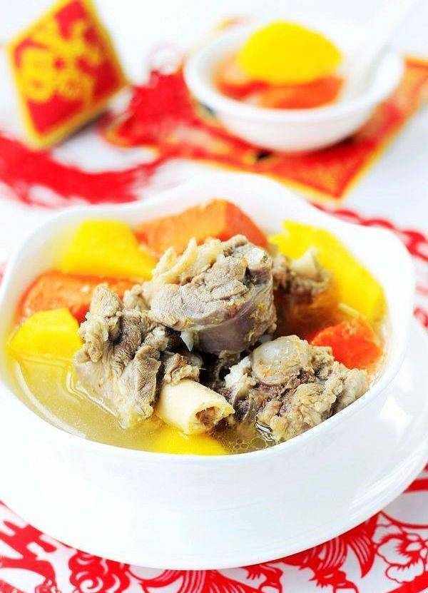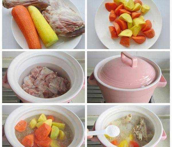3、加胡蘿卜燉30分鐘左右,加鹽在燉5分鐘左右即可