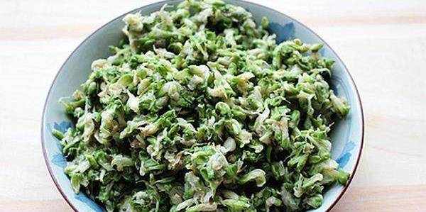 1、將冰凍的槐花從冰箱取出,自然化凍後,擰幹水分;