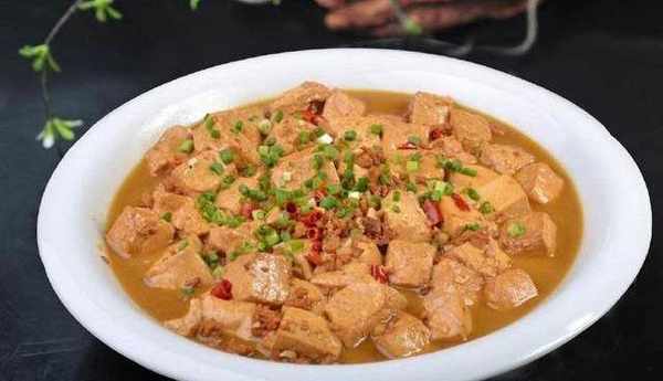 在炸的時候也需要註意硬度,用筷子感受一下,輕輕壓住如果是外面有脆皮,裡面還Q彈的時候,就可以撒上胡椒粉和孜然粉和少許的醬油(醬油隻能少許加入,之需要起到紅燒效果就行瞭,加多瞭會嚴重影響菜色),紅燒豆腐當然不能隻有豆腐,裡面來點小肉丁,口感立馬就蹭蹭上升瞭。用煎豆腐的油來炒肉是個不錯的選擇。出鍋瞭,最後再來點小蔥,就非常OK瞭。