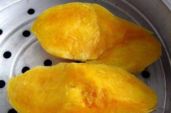 3.紅薯蒸熟後,掀開鍋蓋,冷一會再入盤,以免燙傷自己