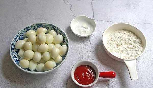 準備食材:鵪鶉蛋240克,番茄醬30克,半碗面粉,少許鹽,少許水。