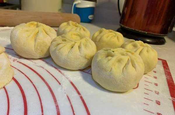 八:蒸鍋裡加水,放上洗濕擰幹的蒸籠佈,把一個個包好的包子放入蒸鍋蓋上蓋子二次醒發10分鐘,也可以放搟面墊上蓋上保鮮膜二次醒發,10分鐘後拿起來,包子胚感覺輕飄飄的,說明就可以上鍋蒸瞭。如果有點重,就在多醒發幾分鐘再蒸。