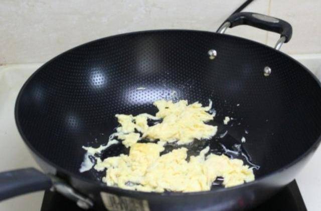 5.在煎雞蛋的時候,開一點火,把雞蛋煎得嫩嫩的更香一些。千萬不要把雞蛋煎糊會影響到整道菜的效果。