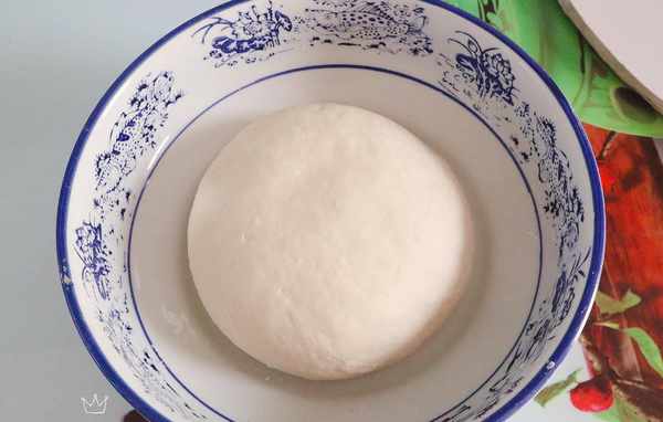 4、把面盆中的幹面粉一分為二,一半用開水燙面,一半用涼水和面,全部攪拌成絮狀後,混合在一起下手和成一個軟硬適中的光滑的面團,蓋上蓋子醒面半個小時。
