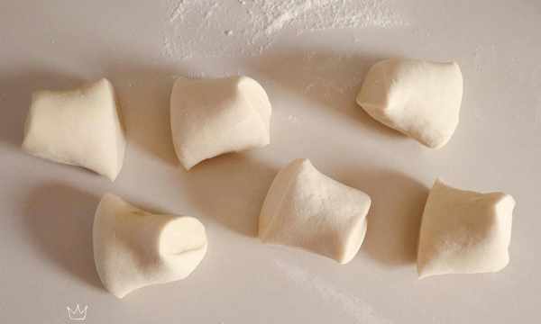 9、餡料準備好後,把醒好的面團放在案板上揉搓一下,先搓成長條,再切成大小均勻的面劑子。