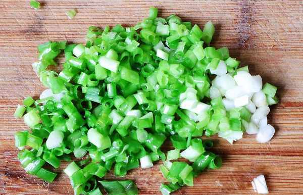 7、準備幾顆香蔥,洗凈後切成蔥花,放入碗中。
