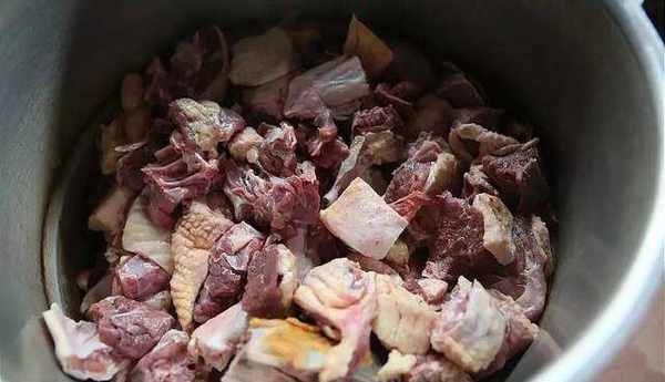 2、燒一鍋開水,等水滾燙後放入鴨肉先把血水撈掉,達到去腥的效果,一般至鴨肉變白色的時候就可撈出,在撈的過程記得把泡沫給撇掉,這些都是血水。