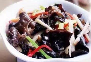 材料:藕、木耳、紅椒、香芹、蒜、鹽、香菇精少許、水淀粉