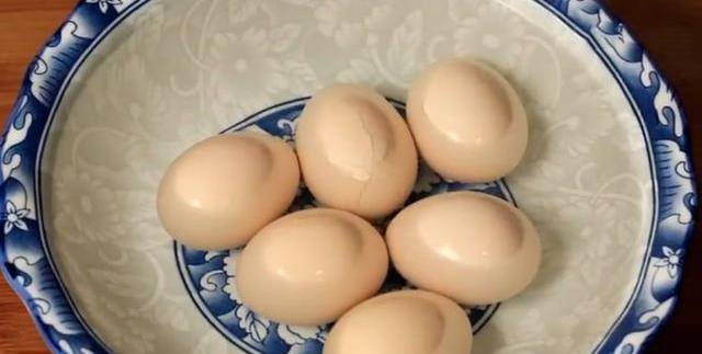 2.將煮熟的雞蛋放入清水中,剝去外殼備用。