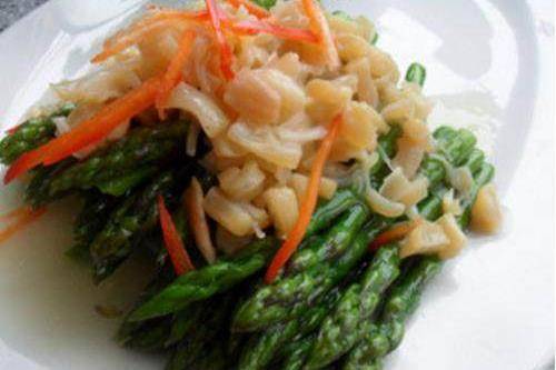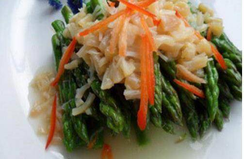 原料:蘆筍、幹貝,紅彩椒(一點點就行,裝飾用的)