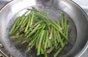 2、焯蘆筍的開水中加入適量的鹽和油可以使蔬菜的色澤更鮮艷。