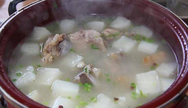 2.鍋裡放清水,豬骨入鍋,放薑片煮開,轉小火燉,八成熟時下蘿卜,燉熟後放鹽,胡椒粉即可。