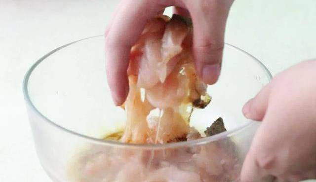 雞胸肉洗凈切薄片,加入半茶匙鹽、1湯匙生抽、1湯匙料酒、30克蛋清、1/4茶匙胡椒粉反復抓勻,再加一勺油抓勻,醃制片刻。