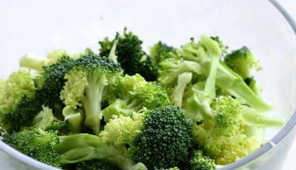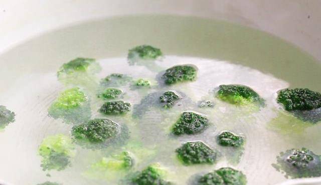 準備一鍋水,放入鹽和油,水沸放入西蘭花焯水二分鐘,撈出後放入冷水浸涼,瀝水待用。