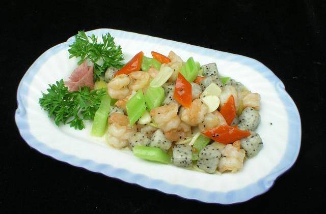 火龍果炒蝦球主料,蝦仁200g,火龍果0.5個,西芹100g;調料:食鹽5g,雞精1g,料酒1大勺,淀粉4g,水淀粉2大勺,元貞糖1g。這是一道味道醇厚,營養豐富,鮮爽無比的佳肴。
