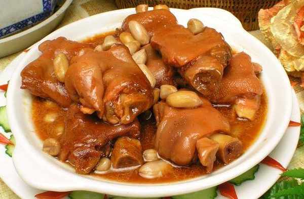 果仁汾蹄主料:豬蹄2隻,花生仁1碗;輔料:鹽1茶匙,生抽1勺,老抽1勺,花雕酒1勺,冰糖1勺,半料酒1勺,八角2個,桂皮2片,草果1個,幹紅椒4個,花椒1小把,小茴香適量,蒜6瓣,蔥1根,生薑5片,蔥頭2個。