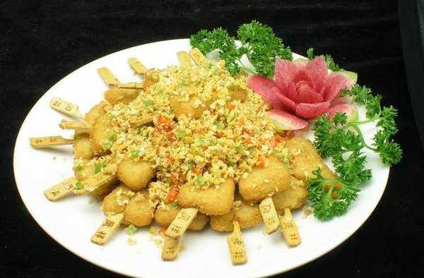 金沙脆雞柳主料:帶骨雞柳3個、尖椒10克、胡蘿卜20克、輔料:油6克、烤肉醬1袋、幹淀粉15克、生抽4克、鹽2克、花椒油2克、白芝麻1克。這道金沙脆雞柳口味清新、價廉物美,簡單易做。
