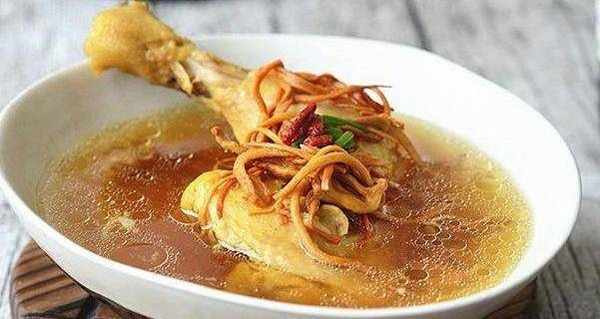 食材:雞排腿2個、蟲草花15克、八角2粒、蔥適量、薑1塊、鹽適量
