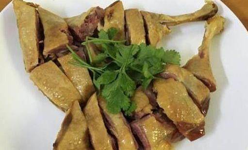 2、煮15分鐘後翻另一邊再煮15分鐘。煮好撈岀放涼。放熟食案板上剁小口。擺盤後撒點芫荽段即可。