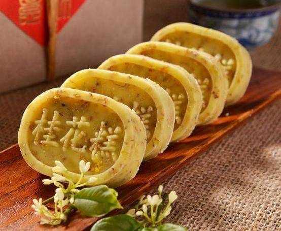 桂花糕是一種很傳統的糕點,它已經有著300多年的歷史。桂花糕一般是在桂花盛開的時節制作,選用最新鮮的桂花制作成的糕點,香氣撲鼻,口感香甜美味,甜而不膩,是秋日不可缺少的一種美食。以花入味,桂花糕不僅好吃,還很由營養。秋日裡,吃著桂花糕賞月也別有一般風味。