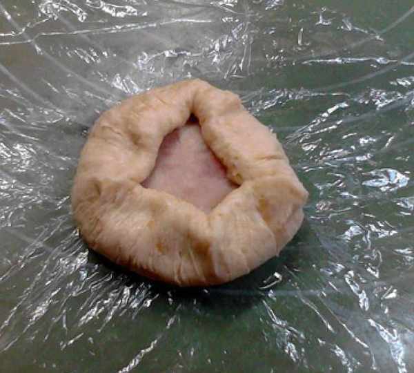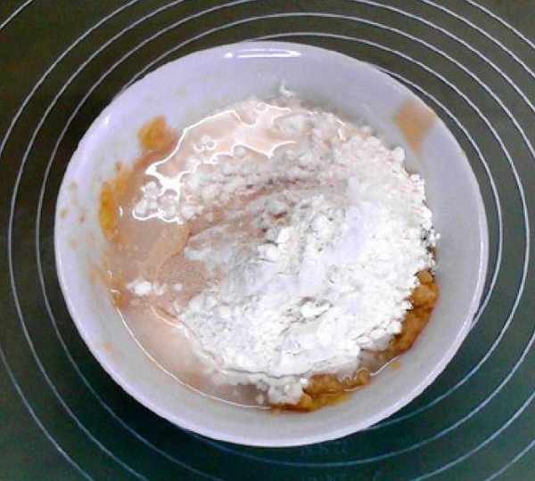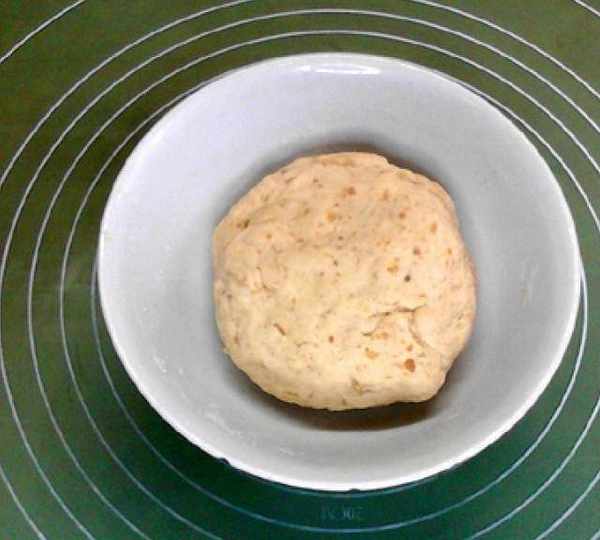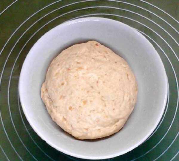 第1步、面團:土豆泥100克,中筋面粉150克,水30克,鮮雞汁25克,酵母粉2克,德式啤酒伴侶火腿80克。