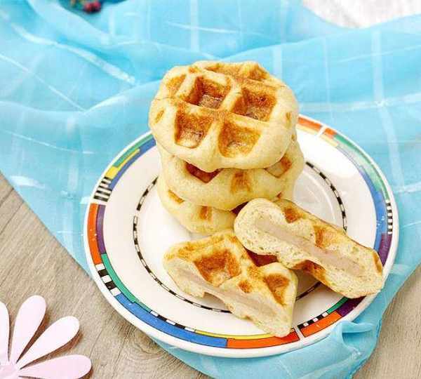 消耗土豆土豆做皮肉腸夾餡鮮雞汁給皮調味火腿夾餡土豆華夫