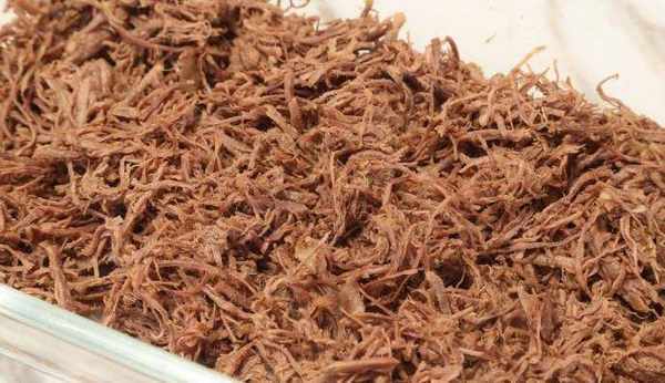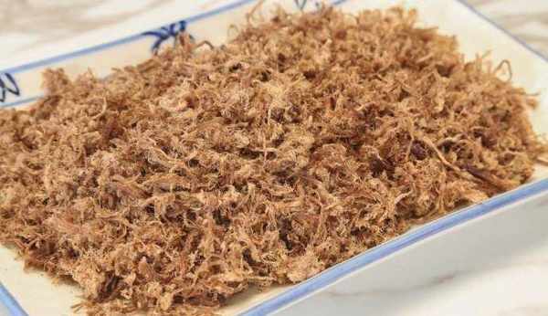 5.如果用烤箱,那在撕碎以後,是入烤箱烤幹,建議溫度100以下,低溫烘幹,自己勤看著點別烤糊瞭。如果用鍋炒,就是撕碎後入平底鍋小火炒幹,需不停攪拌。