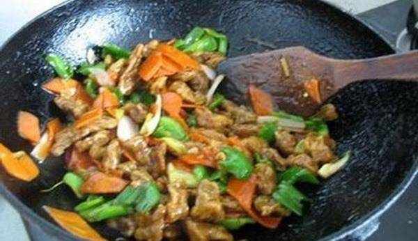 1.把胡蘿卜洗凈,去皮,切片,把肉清洗幹凈,切片,把辣椒洗凈,切絲,蔥切小段。