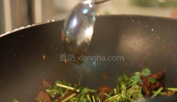 5.再將羊肉放入鍋中翻炒,最後放入香菜段翻炒幾下即可出鍋。