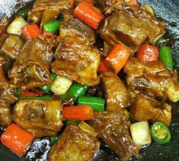 炒至斷生,就可以出鍋裝盤瞭,非常美味的辣炒排骨
