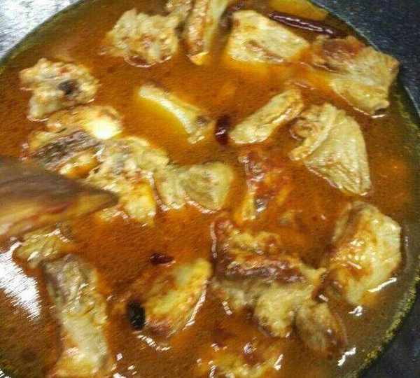 翻炒均勻,再加入水,一定要沒過排骨,加入少許的鹽