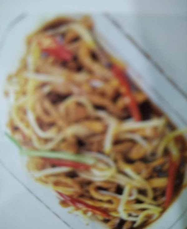 [原料]裡脊肉300克,綠豆芽150克,植物油、精鹽、雞精、蠔油、蔥薑絲、雞蛋清、幹淀粉、紅幹椒絲、花椒油各適量。