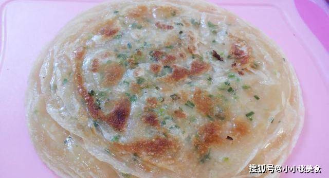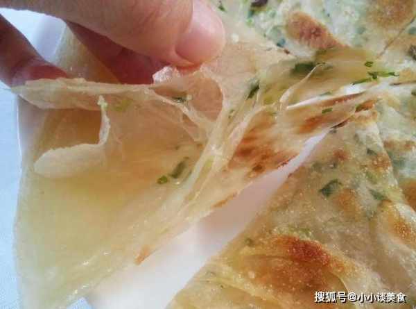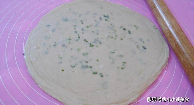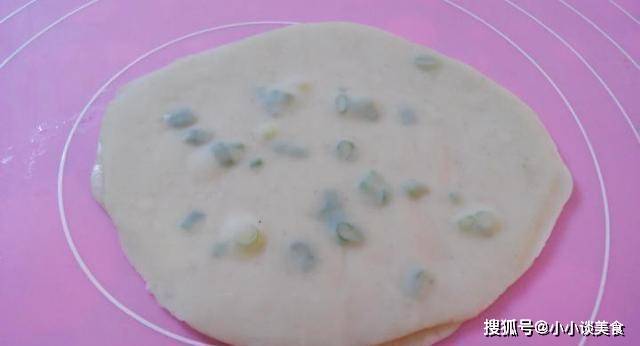 放入搟好的蔥油餅,中火
