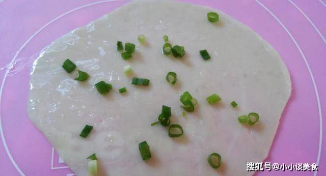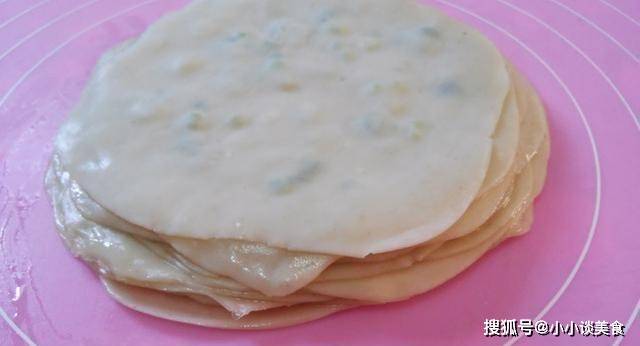 重復步驟2,抹油,撒鹽,撒蔥花,蓋上餃子皮,層數多少!十層二十層都無所謂!