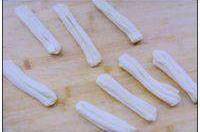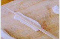 將兩根面片疊在一起,用筷子在中間使勁壓一下