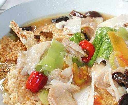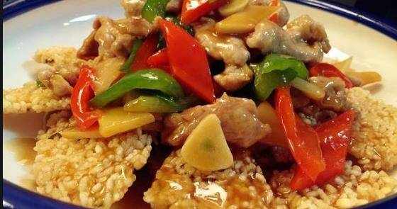 1、鍋巴要炸脆、要熱,炒好的肉片也要熱一點,淋上去的時候才能更好地融合