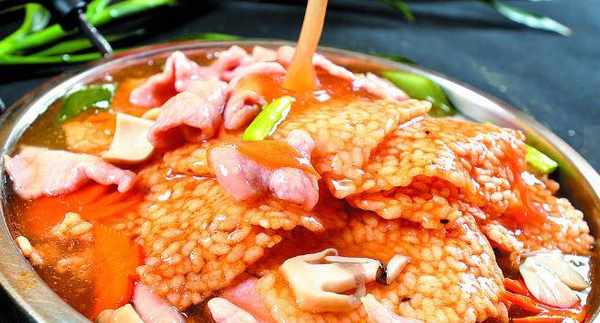 4、鍋巴和肉片一起上桌,趁熱淋在鍋巴上,就可以吃啦
