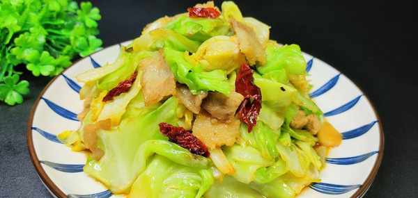 全部準備就緒開始烹制,起鍋燒油,油溫三四成熱下入五花肉小火煸炒,一直炒香,炒出油脂,加入料頭再次煸炒,沿著鍋邊淋入少許料酒去腥增香。下面加入包菜,全程開啟大火翻炒,一直翻炒至斷生,大概翻炒20秒鐘左右,下面開始調味,加入少許東古一品鮮,蠔油、食鹽、雞精、再次開啟大火翻炒,我們在炒包菜的時候一定要最後調味,這樣做出來的包菜好吃清脆還不出湯,關火裝盤,美味即成。