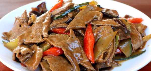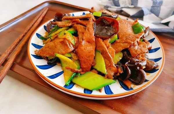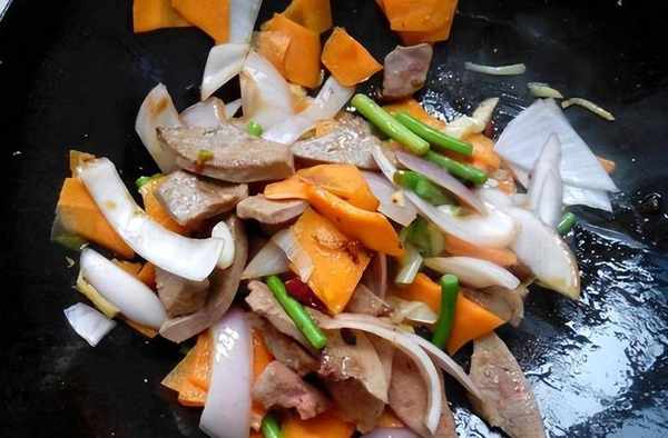 接著,鍋留底油,放蔥薑蒜炒香之後,放上一勺蠔油,一勺陳醋,兩勺糖,半勺鹽,一勺雞精味精,接著把豬肝以及其他的配料下鍋,大火翻炒一分鐘,炒至湯汁粘稠後,就可以出鍋裝盤吃啦,口感鮮嫩,養肝降火又美味,趕緊做起來吧。