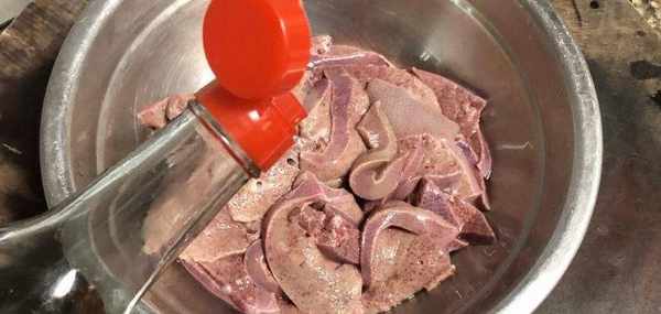 準備豬肝的前三分之一,就是肝尖,切成硬幣厚的薄片,用清水清洗兩遍,再倒上點啤酒,抓洗兩遍,控幹水分放在碗中,
